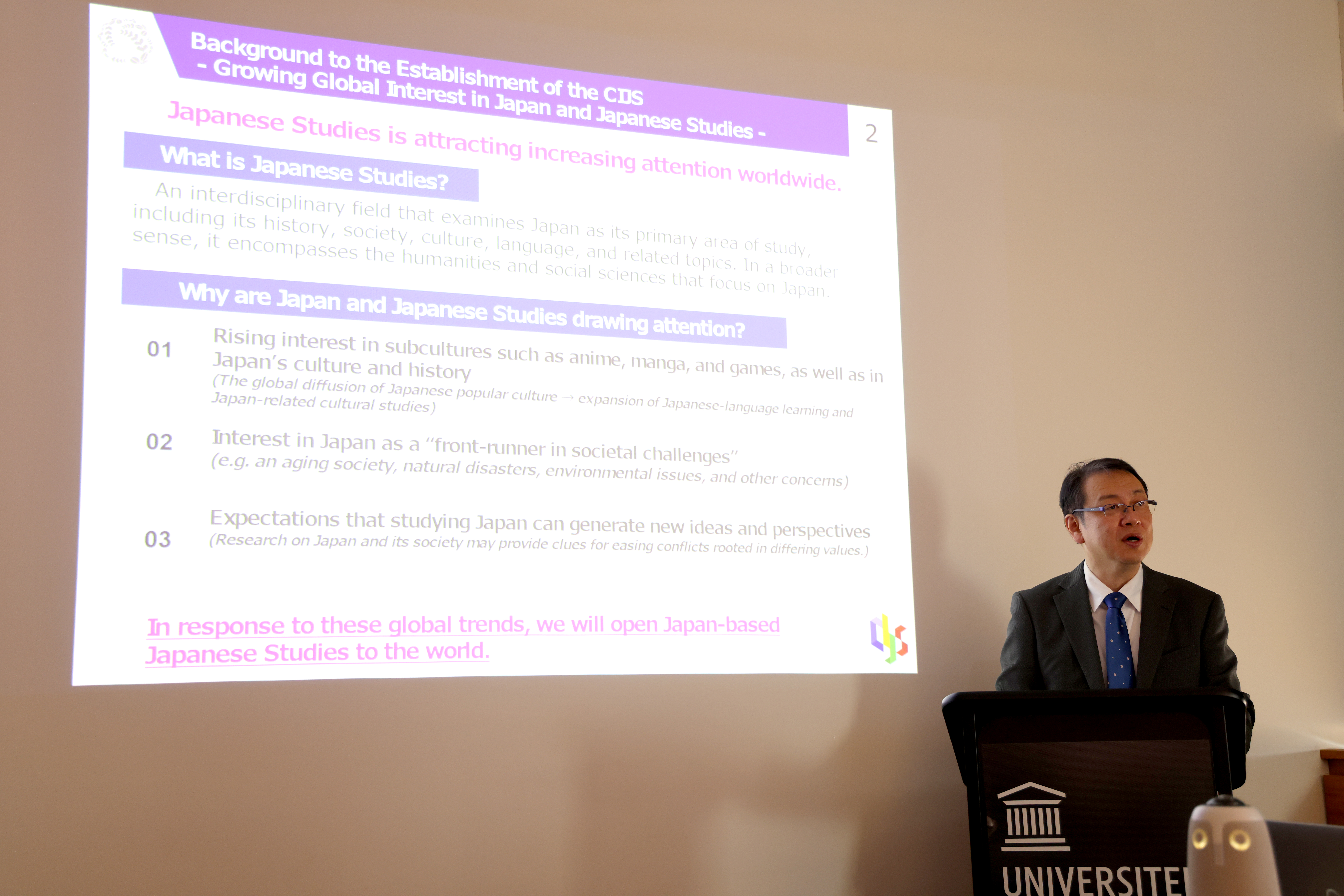 On the first day of the workshop, following an introduction to CIJS activities by Director Hiroaki Adachi, annual reports were presented for all 11 ongoing collaborative research projects within the center. Many local students majoring in Japanese Studies attended the sessions, providing an opportunity to witness the high level of international interest and diversity in the field. Through Q&A sessions, coffee breaks, and a reception, members from both universities deepened their interactions, making it a valuable time for building further cooperative relationships as core institutions for Japanese Studies.